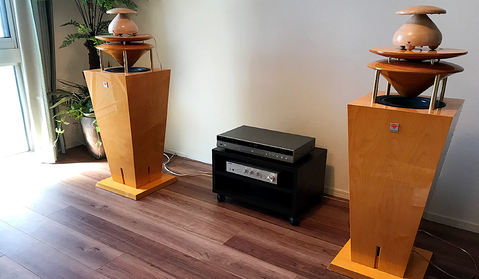 ※ システム1:無指向性RP062スピーカー2台、無指向性ツイーター2台(+設置台)、SACD再生器、アンプの構成です。